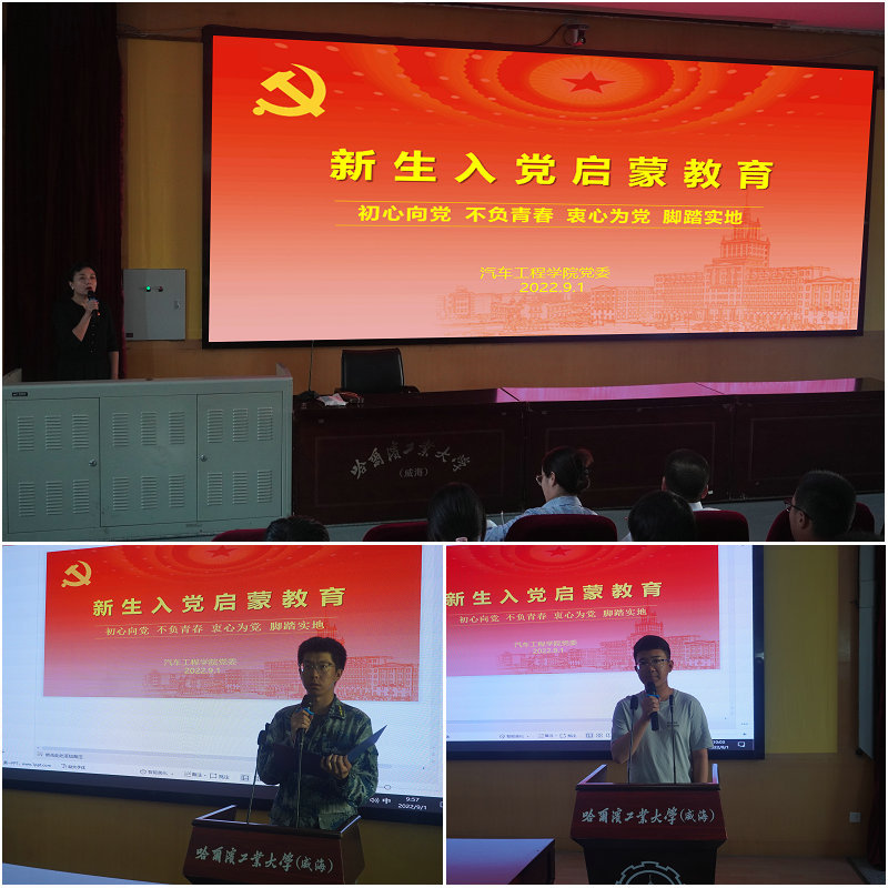 9月1日上午,汽车学院于G202举行主题为《初心向党、不负青春、衷心为党、脚踏实地》的2022级新生入党启蒙教育,帮助学生提高思想觉悟,端正入党动机,激发入党积极性。入党启蒙教育由学院党委组织员胡萍主持,学院党委书记高庆节,副书记隋海瑞,学生党支部书记参加会议。